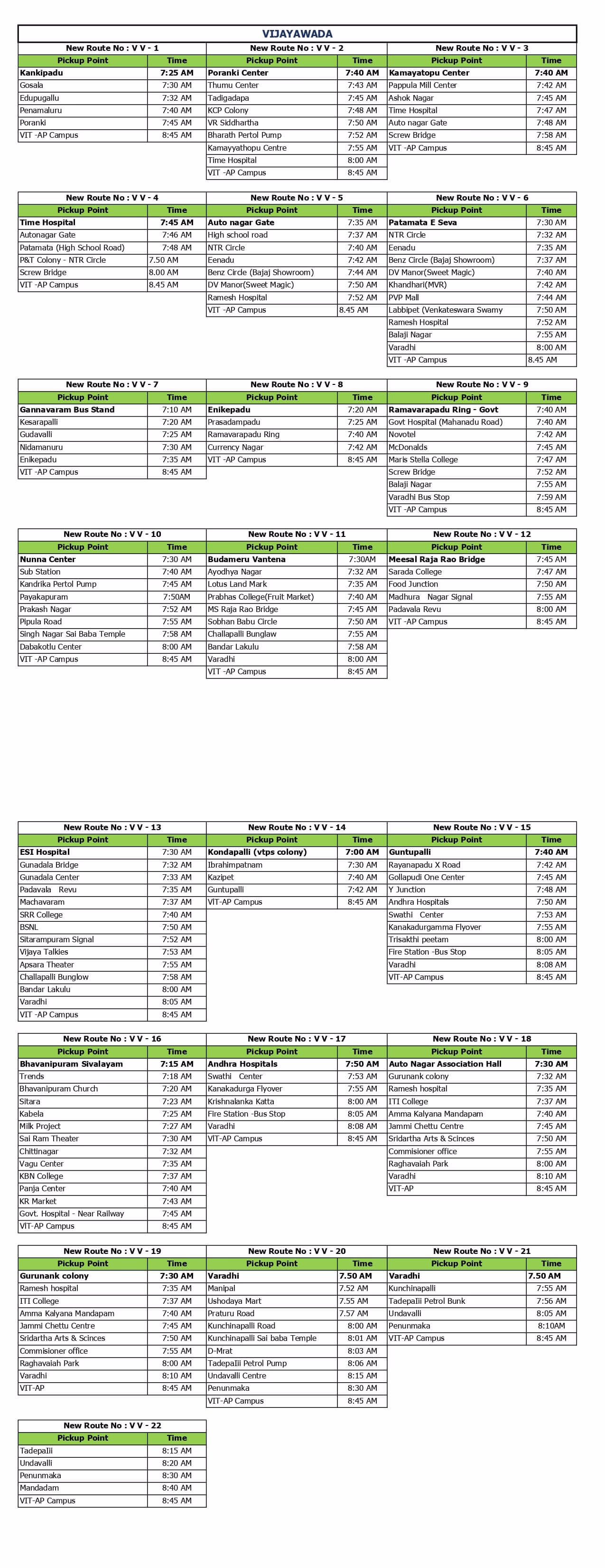 VIT-AP provides students with safe and secure buses operated by responsible personnel. Day scholars from Vijayawada, Guntur, and Tenali can conveniently avail themselves of this transportation service. These buses ensure a comfortable commute to and from the campus, fostering a sense of security and reliability for students. By offering this facility, VIT-AP prioritizes the well-being and convenience of its student community, facilitating smooth and hassle-free transportation for those residing in nearby areas.